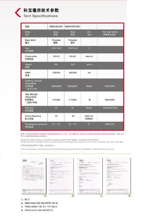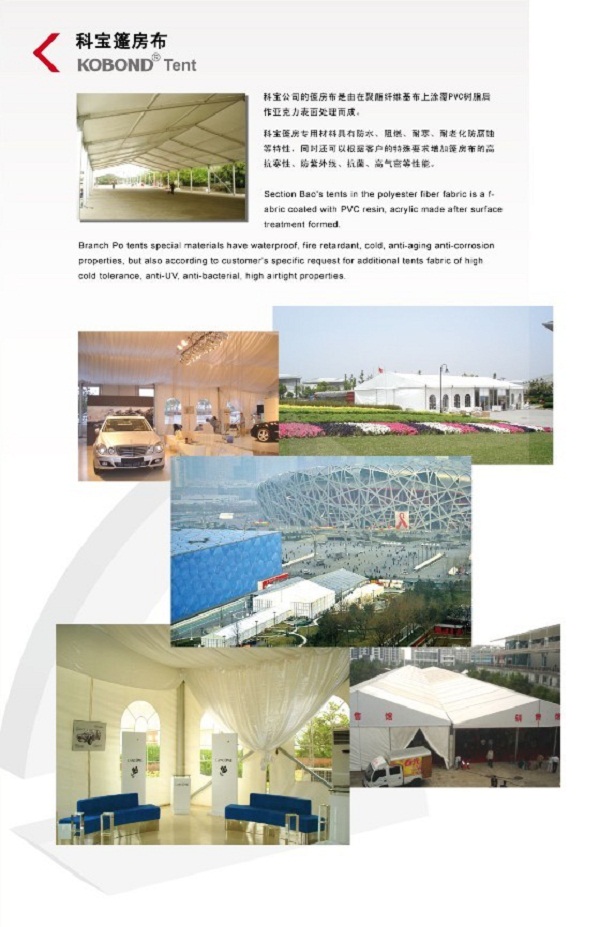 不同規格、重量的科寶篷房材料可用作制造各種大小跨度的篷房,具有優越的抗紫外、防霉和防火性能。